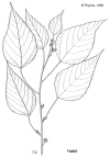 Twigs with soft, light-brown caducous hairs. Petioles round in section. Upper leaf surface with prominent nectaries near the leaf apex. Absent from Peninsular |