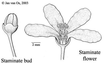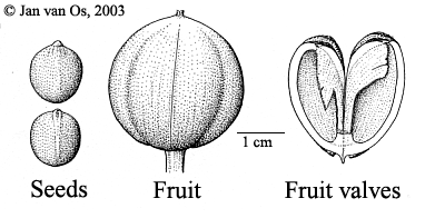 Tree, 1540 m high, bole 1033 m long, dbh 2060 cm; buttresses absent to present, up to c. 1.3 m high and c. 50 cm wide. Outer bark c. 0.2 mm thick, smooth (to covered with many slightly raised lenticels), dark grey to grey-brown to brown; middle bark red to mottled red and cream to straw; inner bark 1016 mm thick, straw to yellowish brown to red-brown, with some latex; sapwood c. 2 cm thick, white to brown; heartwood pink, moderately hard and heavy. Leaves: petiole 410(20.5) cm long, round; petiolules absent to up to 2.5 cm long; leaflets elliptic to obovate, 5.523 by 26 cm, length/width ratio 2.73.5, chartaceous, base attenuate or acute, apex acuminate or rounded, upper surface green, drying greyish brown, lower surface light green, drying chestnut-brown; nerves 617 per side, looped and closed near the margin, veins widely reticulate to slightly scalariform. Inflorescences up to 18 cm long; branches up to 7.5 cm long; bracts triangular, c. 0.5 by 0.25 mm. Flowers with a pleasant fragrance; peduncle 0.55.5 cm long; petals obovate, margin entire, apex rounded. Staminate flowers 1.53.2 mm diam.; pedicel 512 mm long, calyx 23.2 mm deep, lobes ovate, 11.5 by 11.4 mm, veins inconspicuous; petals 58(14) by 24 mm, hairy outside only, veins 5 or 6; disc glands obovate or elliptic, 11.2 by 0.30.8 mm; filaments 0.41.2(3) mm long, threadlike; anthers 0.70.9 by 0.80.9 mm. Pistillate flower: pedicel 0.81.6(2 in fruit) cm long, calyx 22.5 mm high, lobes ovate, 0.81.2 by 11.6 mm, veins inconspicuous; petals 813 by 45 mm, veins inconspicuous; disc glands obovate or elliptic, 0.41 by 0.30.7 mm; ovary 33.5 by 2.22.6 mm; stigmas 11.2 mm long. Fruits 2.53.5 by 2.12.6 cm, wall 22.7 mm thick, smooth. Seeds 1012 by 711 mm, dark brown.
