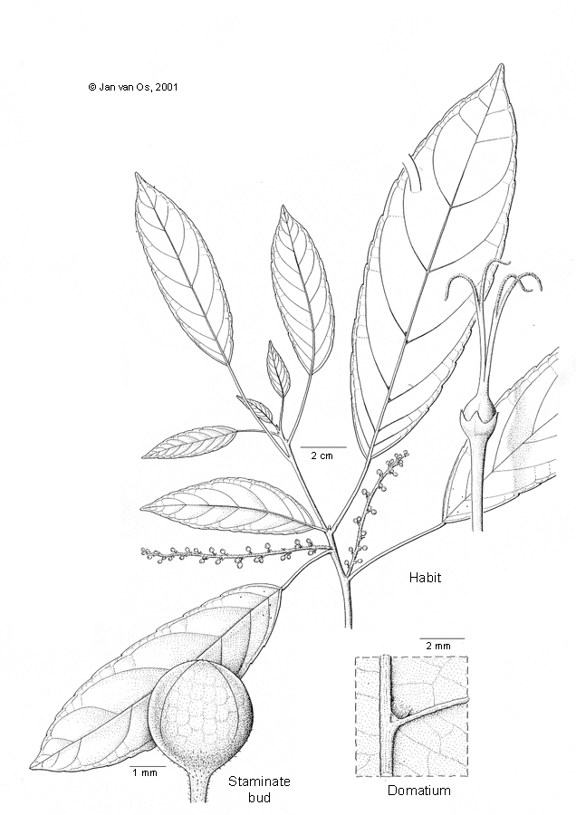 Diagnostic characters The only Malesian species with domatia on lower leaf surface and a predominantly 2-locular ovary.