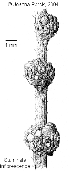 Note It is clearly erroneous to treat this species as a variety of C. javanicum (Chakrabarty & Gangopadhyay, 1988), because it differs from C. javanicum in several critical characters (hairs in vegetative parts present, surfaces granulate, staminate flowers in glomerulate clusters, pistillate inflorescences with several flowers).