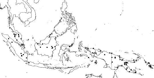 Distribution An Asian genus of five species, ranging from Burma, Thailand and Vietnam throughout Malesia (unknown from the Lesser Sunda Islands and the Moluccas) to the Solomon Islands.