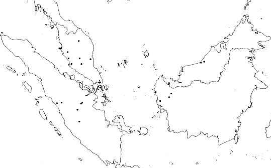 Distribution Thailand (Peninsular: Narathiwat), Malay Peninsula, Sumatra, Borneo.