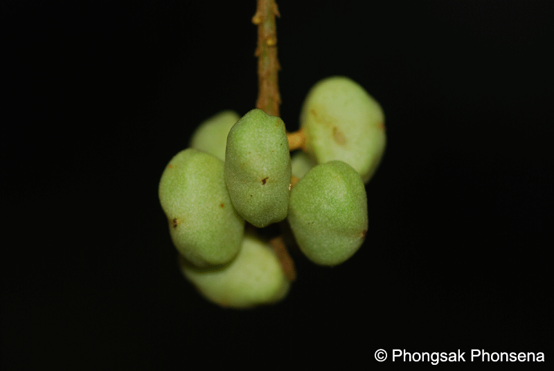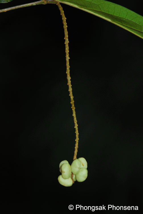 Inflorescences terminal. Stamens free from each other and pistillode, connective with short, c. 0.3 mm high appendix. Fruits subglobular to ovoid to angular-subglobular; wall 818 mm thick. Stigmas in crater-like opening of ovary. S.E. Asia to Sumatra, Borneo and the Philippines |
