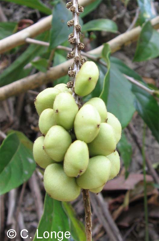 Habitat & Ecology Primary rainforest rich in palms, secondary forest (with much bamboo), riparian forest, secondary montane forest, along sea coast; soil: on rocks, coral, ferrosal loam. Altitude: sea level up to 600(1500) m. Flowering: March to May, July to September, November; fruiting: May, August, November.