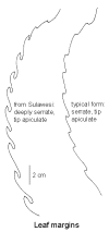 4. Several collections of P. amboinicum from Sulawesi in three different places: Malili-South Sulawesi (Cel/V-171; Cel/II-461), SE Sulawesi (Prawiroatmodjo & Soewoko 2005), and some unknown places in Sulawesi (Elbert 3308; Kjellberg 1149) have leaves with deeply serrate margins (teeth 23 mm long and the tip apiculate), the distance between the teeth is 24 cm, as opposed to 1.43 cm in all other collections. However, as this is the only difference, no taxonomic separation seems justified.