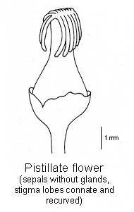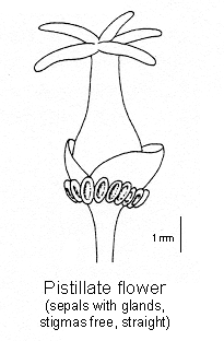 Note This species closely resembles P. griffithianum in especially the staminate flowers. Typical are the pistillate flowers with 10-15 connate and recuved stigmas and the ovoid seeds. Also typical are the long petioles, but here there is overlap with other species.