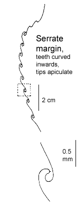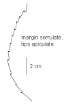 Fruits pyriform or orbicular, up to 6.6 cm in diameter. Leaf margin serrulate, serrate to deeply serrate, teeth acute to curved inwards, distance between teeth up to 3 cm |