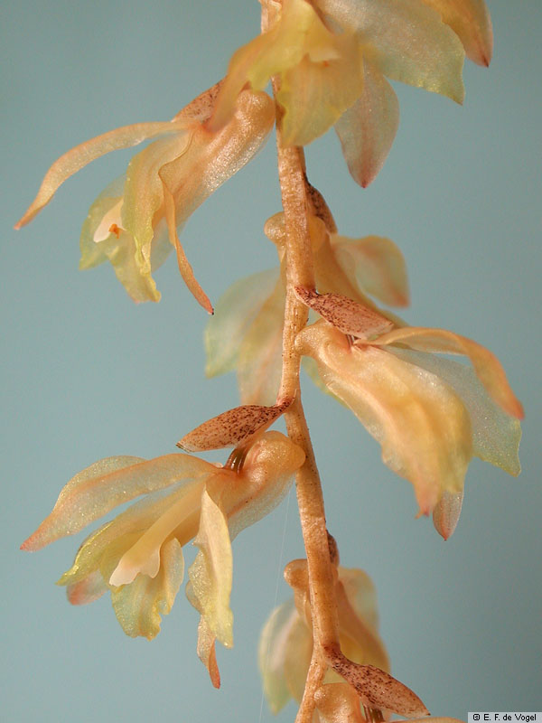 | Vogel, E.F. de. 1986. Revisions in Coelogyninae II, genera Bracisepalum, Chelonistele, Entomophobia, Geesinkorchis and Nabaluia. Orchid Monogr. 1: 17 - 53. |