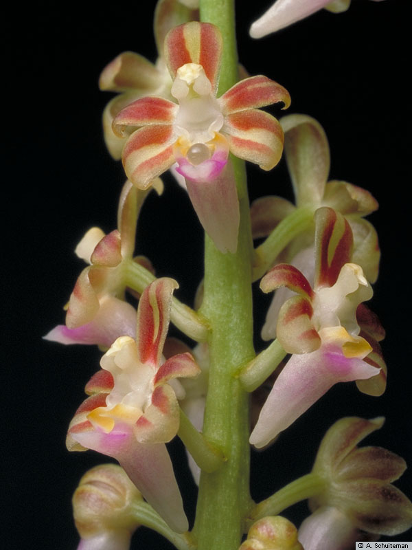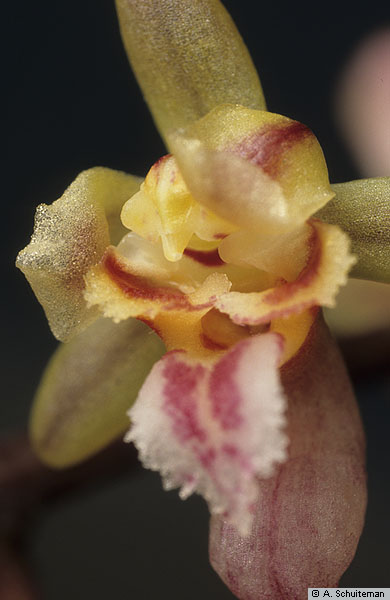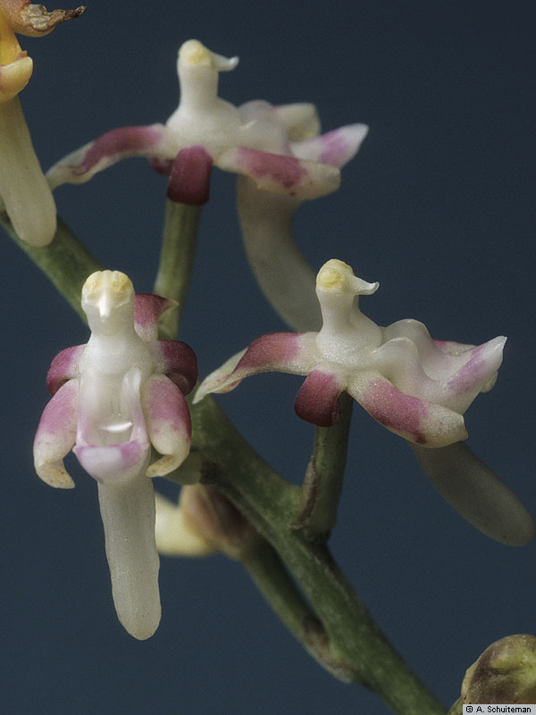 Synonyms: Blumeorchis Szlach. , Carteretia Rich. , Echioglossum Blume , Garayanthus Szlach. , Ormerodia Szlach. , Raciborskanthos Szlach. , Sarcanthus Lindl.