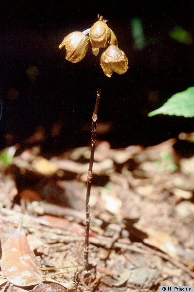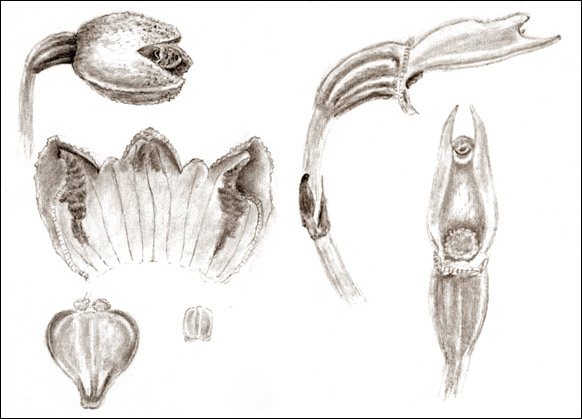 | Gastrodia javanica (Blume) Lindl., growing wild at the Kebun Raya, Bogor, Java | Gastrodia grandilabris Carr, in situ, Borneo, Sabah | Gastrodia callosa J.J.Sm., drawing by J.J. Smith |