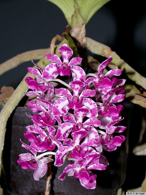 | Rhynchostylis gigantea (Lindl.) Ridl., cultivated at the Hortus Botanicus, Leiden | Rhynchostylis gigantea (Lindl.) Ridl. var. harrisoniana (Hook.f.) Holtt., J. Wubben cult. |