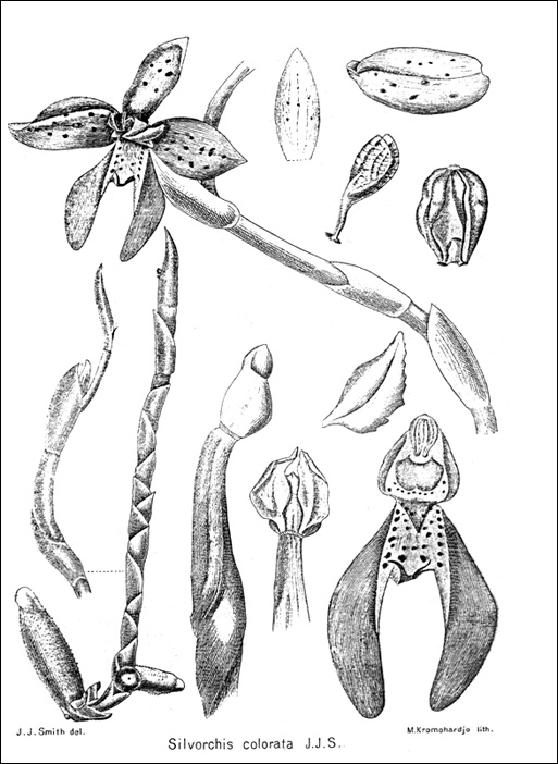 | Silvorchis colorata J.J.Sm., drawing by J.J. Smith, from Bull. Dép. Agric. Indes néerl. 13 (1907) 3, pl. 1 |