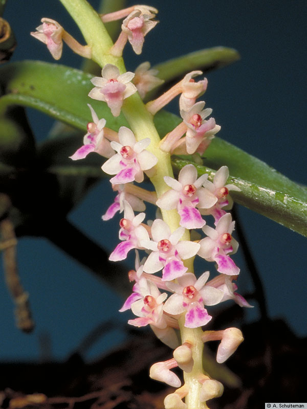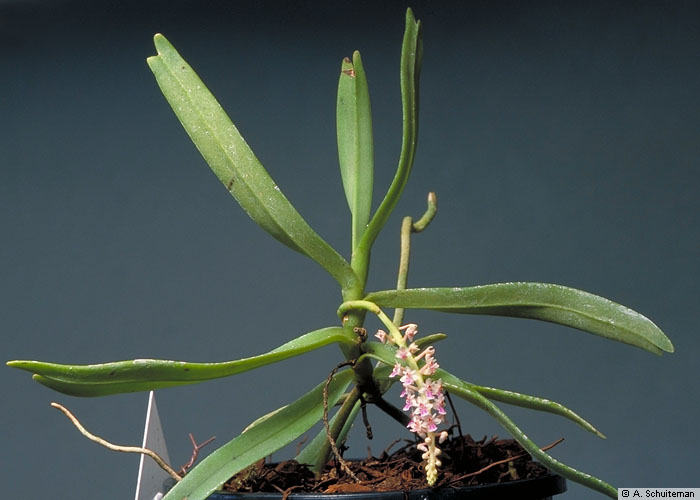 | Smitinandia micrantha (Lindl.) Holttum, cultivated at the Hortus Botanicus, Leiden | Smitinandia micrantha (Lindl.) Holttum, cultivated at the Hortus Botanicus, Leiden |