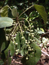 Trees up to 40 m high. Leaves: petiole hairy; blade rhombold to ovate, 8.511 by 67 cm, base truncate to acute, not peltate, with 2 globose glands of 23 mm in diameter, apex acute, surfaces glabrous or thinly pilose, basally 35-nerved, 04 glands similar to the basal ones in the ramifications of the side nerves below. Inflorescences: paniculate, up to 21 cm long, with side-axes up to 4 cm. Staminate flowers: fragrant, white or pale yellow; sepals 4-lobed, lobes c. 2 mm wide; stamens 10, androphore sparsely hairy. Pistillate flowers: not seen. Fruit 2- or 3-locular, with stigma 12 mm wide; pericarp thin.